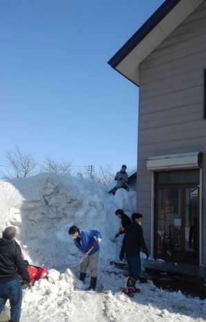 雪かきで除雪機に放り込み雪を飛ばすという、なんとも原始的な作業も必要となり、腕も足もぱんぱん!